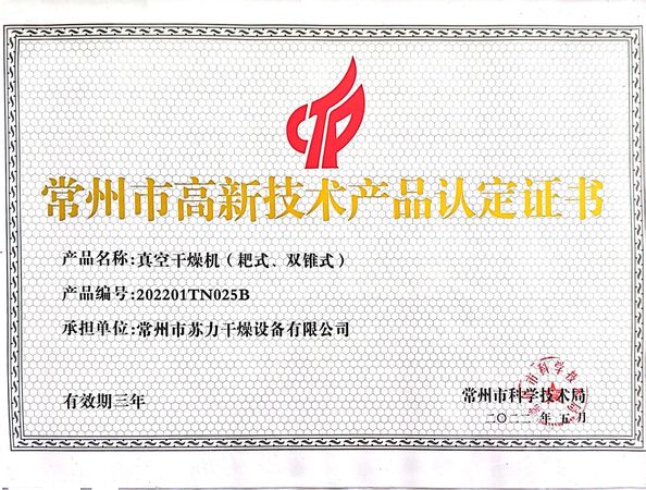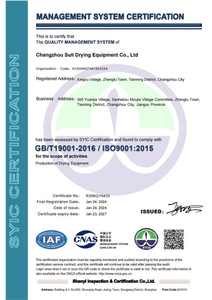 • চীন Changzhou Su Li drying equipment Co., Ltd. সার্টিফিকেশন