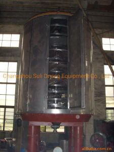 Le matériau humide est continuellement introduit dans la première couche de séchage située sur le dessus du séchoir.Il sera tourné et agité par des râteaux lorsque le bras de râteaux tourne et tomber vers le bas au bord extérieur de la grande plaque de séchage le long de la ligne hélicoïdale exponentielleLe matériau sera déplacé de la petite plaque de séchage à son bord extérieur et descendra au bord extérieur de la grande plaque de séchage située en dessous.Les petites et grandes plaques de séchage sont disposées alternativement de sorte que les matériaux peuvent passer par le séchoir en continuLe milieu chauffant peut être de la vapeur saturée, de l'eau chaude ou de l'huile thermique.Les matières séchées tomberont de la dernière couche de la plaque de séchage au fond du séchoir et ensuite déplacé par des râteaux à la sortie de décharge. L'humidité du matériau sera retirée de la sortie d'échappement sur le couvercle supérieur. Pour le séchoir à plaques de type vide, l'humidité sera aspirée par la pompe à vide sur le couvercle supérieur.Les matières séchées seront rejetées de la couche inférieureLa capacité de séchage peut être améliorée si le séchoir est équipé de dispositifs complémentaires tels qu'un chauffeur à nageoires, un condensateur pour la récupération des solvants, un dépoussiéreur de sac, un mécanisme de retour et de mélange, un ventilateur à traction,et etc..