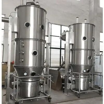 von Klebstoff in den Behälter gesprüht. Dies führt dazu, dass die Partikel zu Granulaten werden, die Klebstoff enthalten. Durch die ständige Trocknung mit heißer Luft verdunstet die Feuchtigkeit im Granulat. Der Prozess wird kontinuierlich durchgeführt. Schließlich bildet es ideale, gleichmäßige und poröse Granulate.