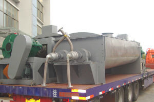 Hohle Schächte sind dicht mit keilförmigen Hohlblättern angeordnet, und das heiße Medium fließt durch die Hohlschacht durch die Hohlschacht.Es gibt eine große Wärmeübertragungsfläche innerhalb des effektiven Volumens der EinheitDie Temperatur des Wärmemediums beträgt zwischen -40°C und 320°C. Es kann Wasserdampf oder Flüssigkeit sein: Warmwasser, Wärmeübertragungsöl usw.ohne Luft zu transportieren, um Wärme zu entfernenDie Wärmeverluste erfolgen nur durch die Körperwärmeisolierungsschicht in die Umgebung. The relative motion of the material particles and the wedge-shaped surface creates a scrubbing action that can wash away the adhered material on the wedge surface so that a clean heat transfer surface is maintained during operationDie Hülle des Paddeltrockners ist Ω-Typ und zwei bis vier hohle Rührwellen sind im allgemeinen im Gehäuse angeordnet.Das Gehäuse hat eine versiegelte Endkappe und eine Oberdecke, um zu verhindern, dass Stoffstaub ausläuft und voll funktionsfähig ist.